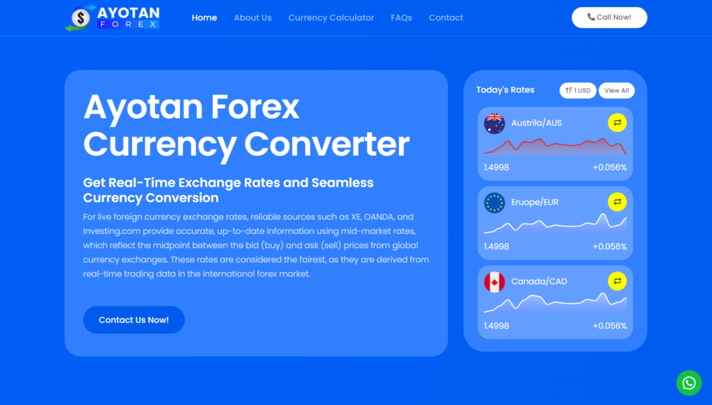 We developed a sophisticated, high-performance trading platform for Ayotan Forex, focused on delivering real-time exchange data through a clean, intuitive user interface. The project involved engineering a custom currency converter and live exchange rate dashboards that maintain perfect responsiveness across all devices. By combining a bold 3D visual identity with secure, fast-loading architecture, we created a digital environment that empowers traders with the speed and clarity required for the modern foreign exchange market.