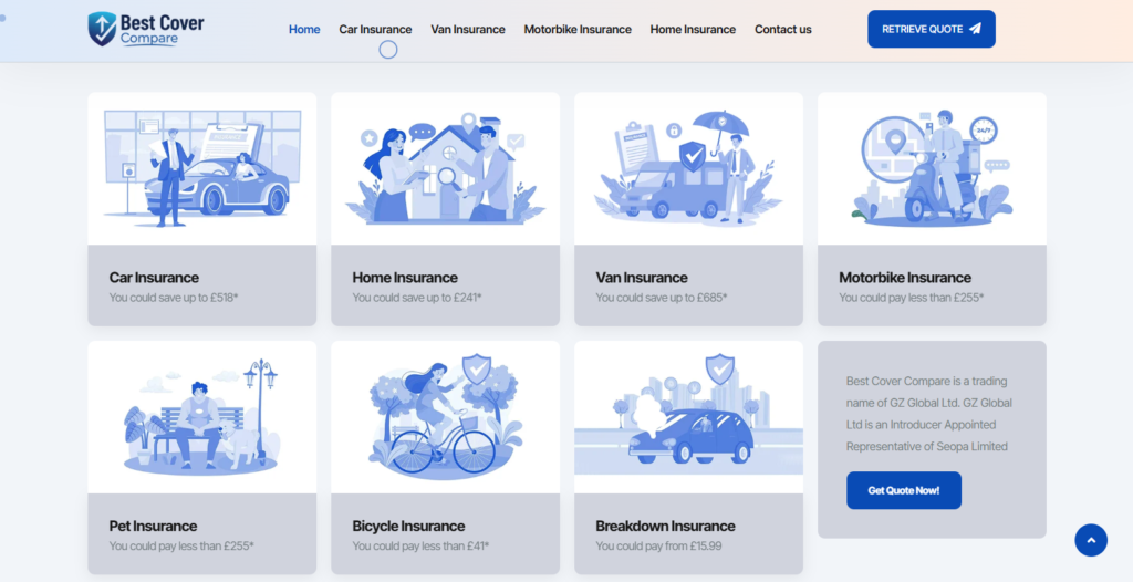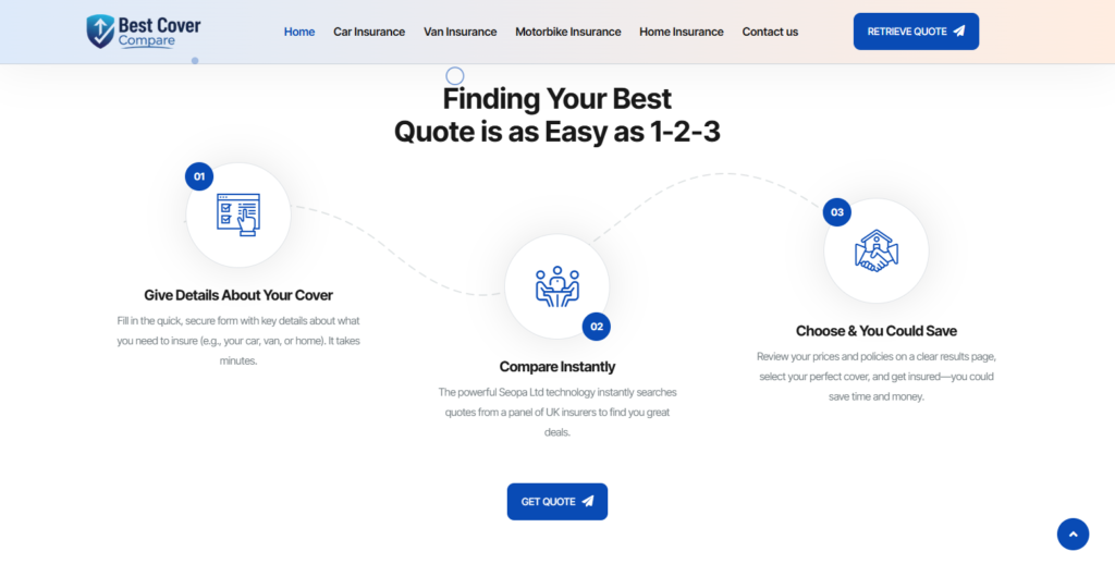 We engineered a sophisticated, high-performance insurance comparison engine for Best Cover Compare, designed to simplify the complex world of personal and commercial insurance. The platform’s architecture centers on a user-first ‘Finding Your Best Quote’ journey, utilizing a clean, trust-building interface that processes information over 100+ insurance providers in seconds. By integrating a professional blue and white aesthetic with intuitive data-entry modules and live quote generation, we successfully reduced the friction between policy research and final purchase. The final build includes custom-integrated modules for car, home, and specialized van insurance, ensuring a lightning-fast, secure experience for users seeking the best financial protection at the most competitive rates.